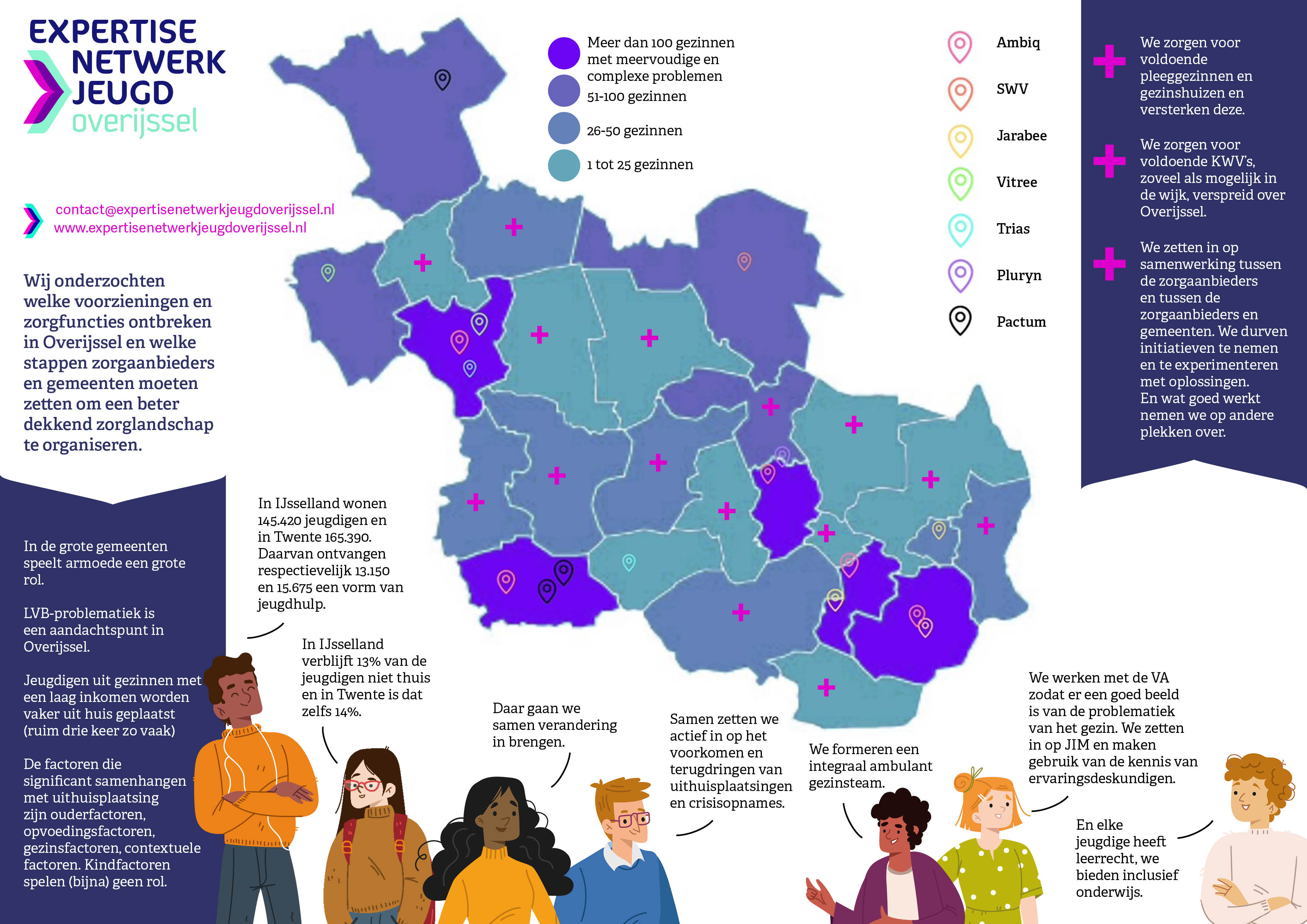 In februari gaf de stuurgroep van het Expertisenetwerk Jeugd Overijssel, bestaande uit bestuurders vanuit gemeenten, zorgaanbieders, onderwijs en jeugdbescherming, opdracht aan het kernteam om een analyse te maken van ons huidige zorglandschap voor jeugdigen met meervoudige en complexe problemen en welke hiaten er zijn.